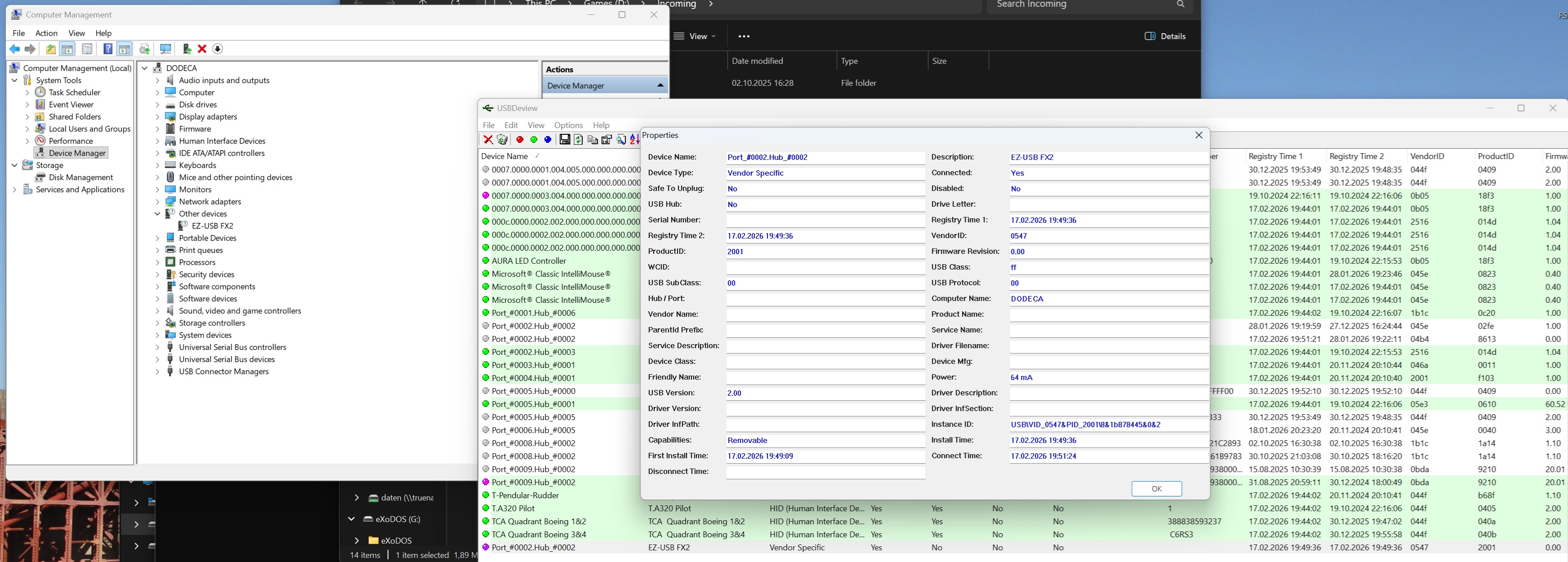 Thanks for the quick reply. I did as you suggested and where able to uninstall the wrong driver (oem15.inf in my case) and shorty afterwards the "IOS Manufacturer Image Driver Update" popped up for installtion, so i guess you're right about that. Unfortunately i was not able to fix the issue. Once i got rid of the wrong driver i had a "EZ FX USB" Device in the device manager but windows refused to accept the GQ-4x4 drivers for this device. Using your usbdeview i retreived the VID of this device and added it to the corresponding sections in the .inf file, then windows detects the driver and the correct device when pointing it to the directory with the driver. But's it not installing the driver but complaining that the hash for the modified .inf file does not match the hash in the .cat file and that's it. I now would need to rebuild the .cat file too which will lead to an unsigned driver requiring even more modifications to windows to be able to install it.