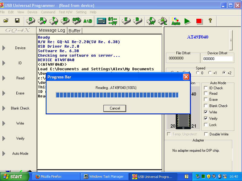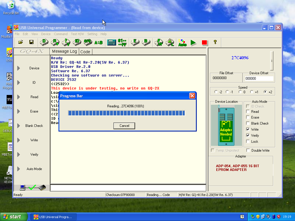 Trying to read / write AM27C4096 EPROMs however on every read or blank check, the program hangs at 100% and never recovers
