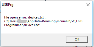 in fact, the entire folder that should be created in C:\Users\XXX\AppData\Roaming\mcumall\GQ USB Programmer is missing (beyond ...\Roaming\