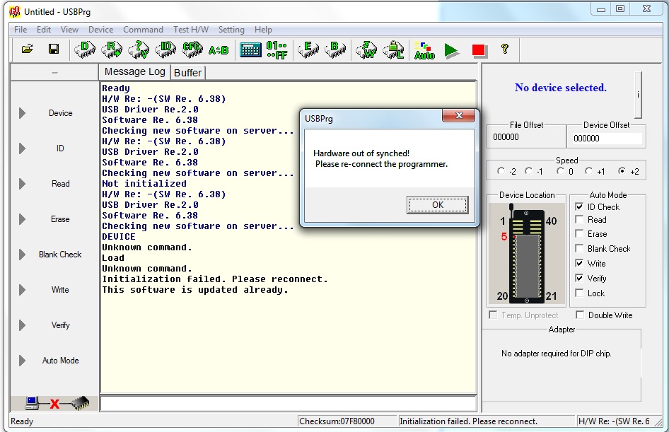 It just stopped working . I unplugged it after an eeprom write and , when I wanted to use it again , I got this error .