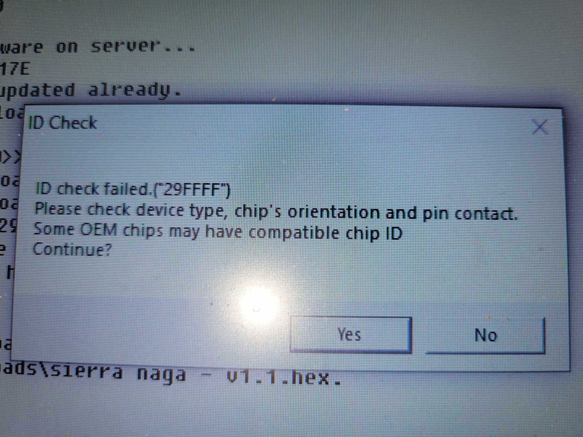 Using the latest software on GQ-4x4, I'm trying to program a PIC18F4520. I attach the programmer, set the device to the PIC18F4520*DIP40, Load the .hex file. Odd thing, is once and a while it tells me the file is too big for the chip and truncating. When I go to program the chip, though, I get -