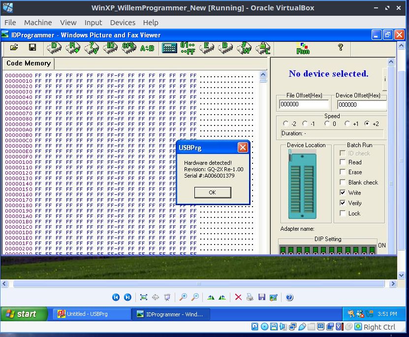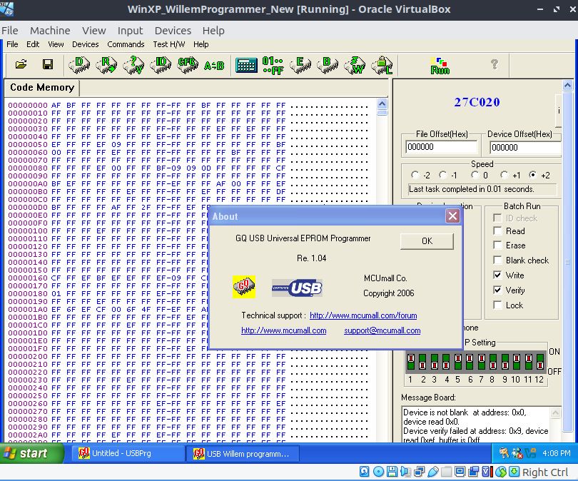 The Virtual Machine may not work because the programmer USB need to be restarted when changing the chip algorithm. That causes USB lost from VM.