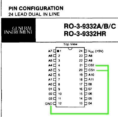 The 9332B has same pinout with 2532, except the pin 21 CS2 pin.