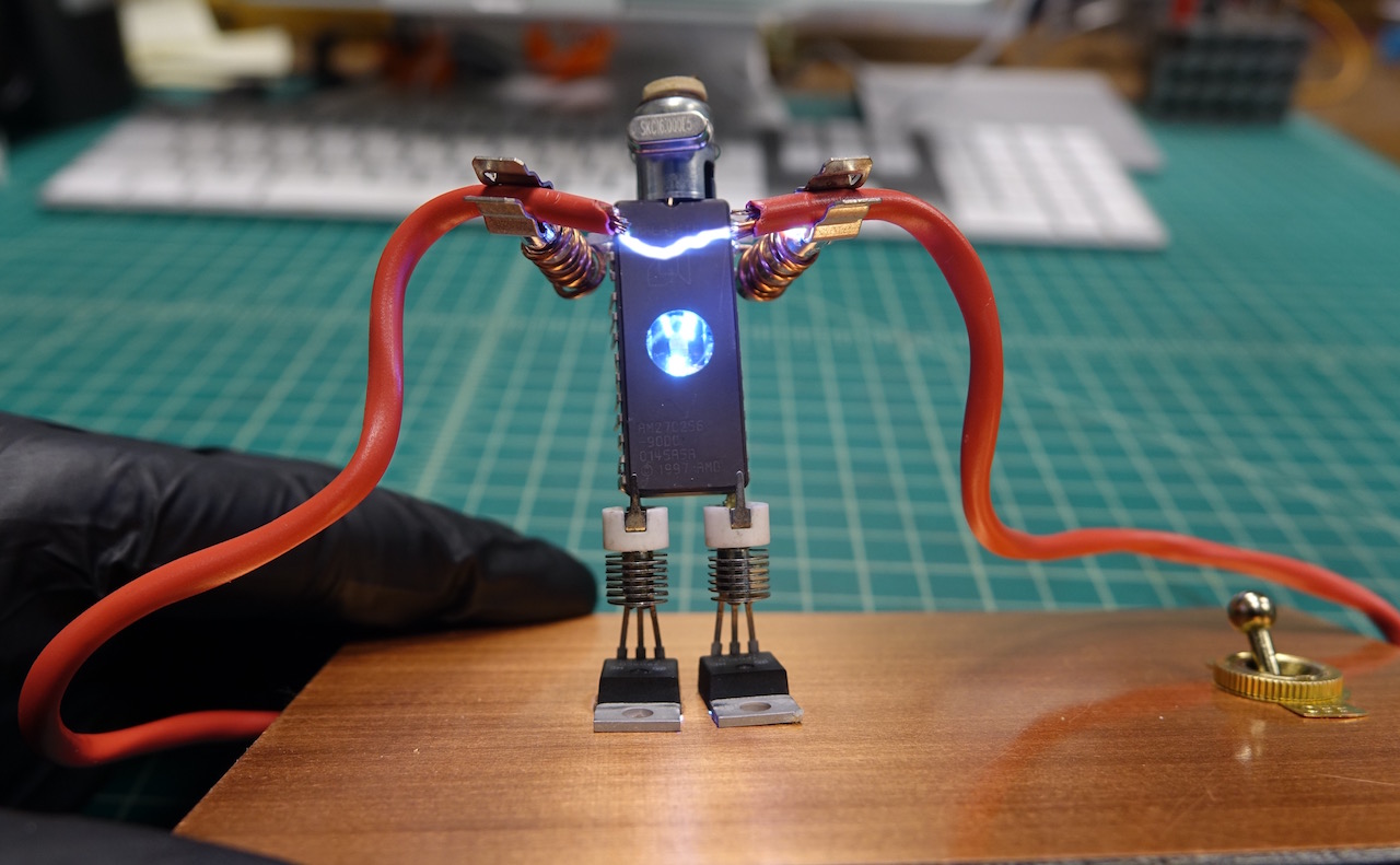Haha nice... the flash of death. Putting a dip24 eprom backwards in a chip socket like m2732a reverses the polarity of the power pins giving you a chance for a nice light show.